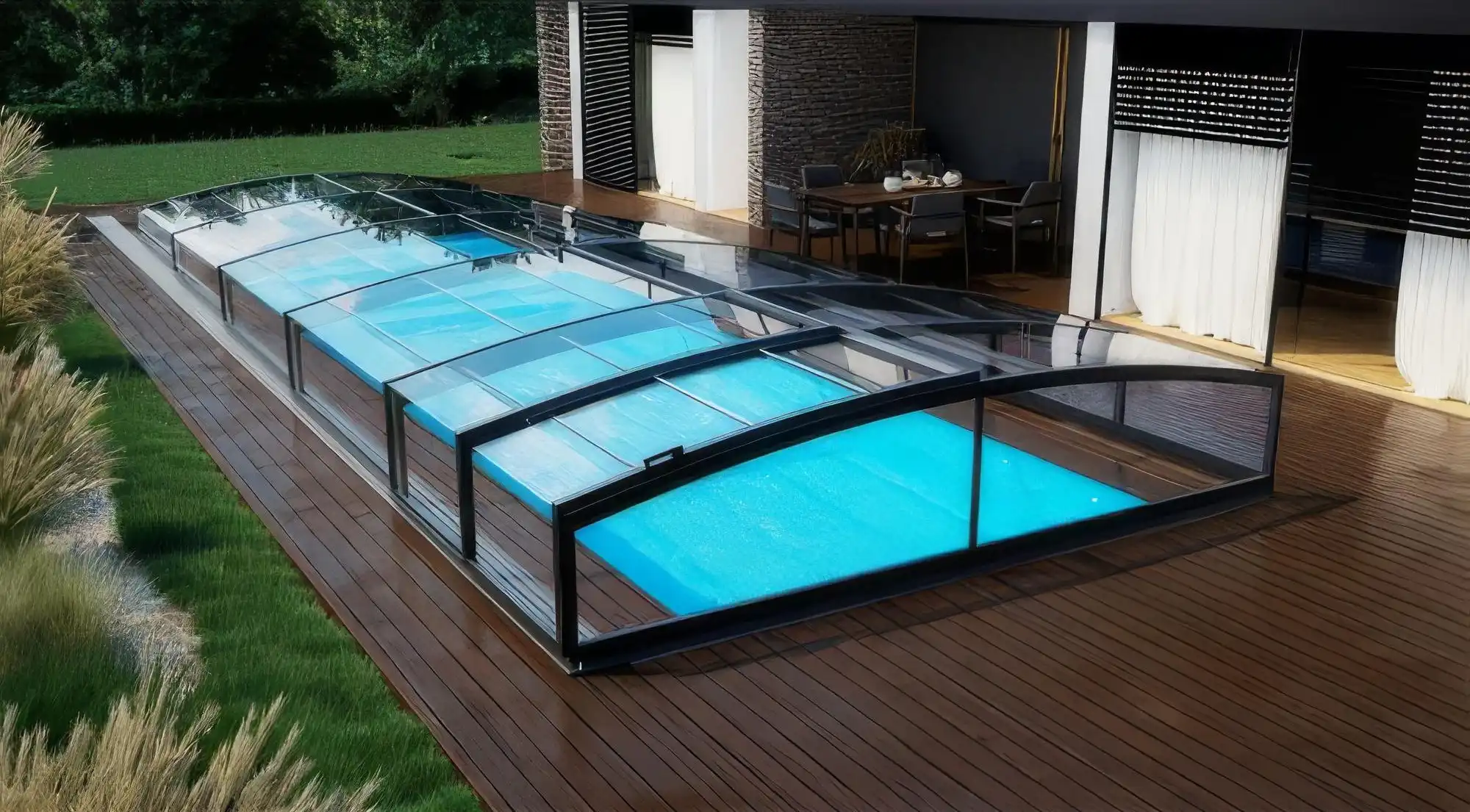 Moodulitest kate on meie kliimas ideaalne hooaja pikendamiseks – see võimaldab kasutada basseini varasemalt kevadel ja kauem sügisel ning hoiab vee puhtana.