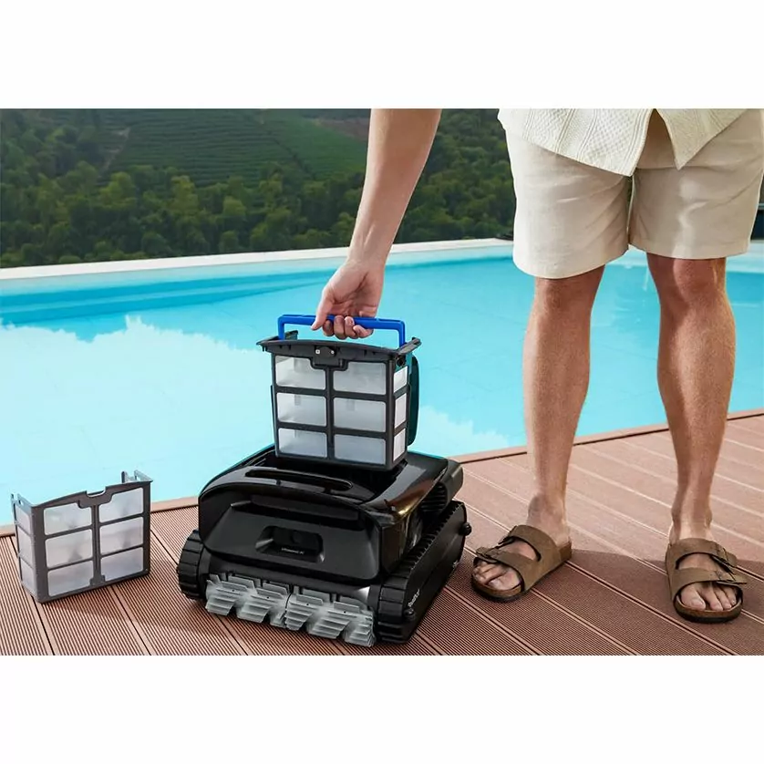 Puhastil on 6 puhastusrežiimi: kiire, standardne, Pro-režiim süvapuhastuseks, eco-režiim, kohandatud tsooni režiim ja MultiZone astmete, platvormide ja keerukate alade jaoks. See eemaldab tõhusalt liiva, lehed ja peene mustuse tänu 9 mootorile ja 4 rullharjale. ClearWater™ tehnoloogia aitab peenosakesi tõhusamalt kinni püüda, jättes vee selgemaks. Robot pargib pärast tsükli lõpetamist veepinnale ning SmartDrain™ süsteem tühjendab vee automaatselt. Kahekihiline filter on kergesti eemaldatav ja puhastatav ülemise ligipääsu kaudu.