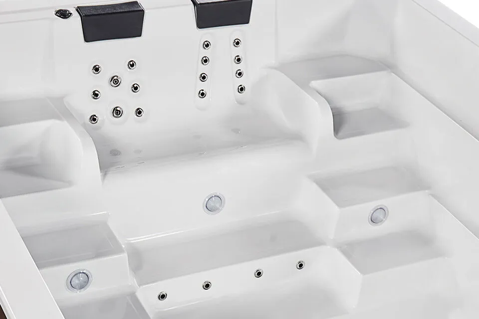 Võimas ujumissüsteem võimaldab treenida paigal ning teha tõhusat ujumistreeningut oma tempos. Samal ajal pakuvad massaažidüüsid lõõgastavat veemassaaži, aidates lihastel taastuda pärast sporti või pikka päeva. Suured mõõtmed ja läbimõeldud disain loovad mugava keskkonna nii aktiivseks treeninguks kui ka rahulikuks spaakasutuseks.